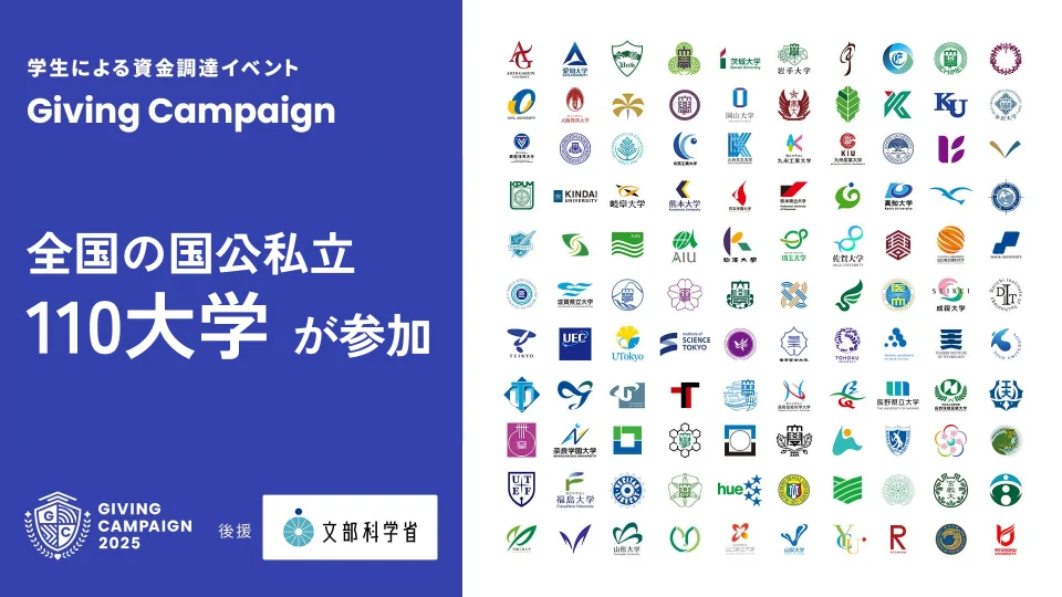 学生による資金調達イベント「Giving Campaign 2025」が全国110大学で同時開催、文部科学省の後援が決定しました。